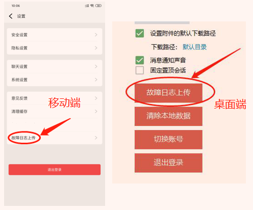 - 故障日志,在咨询售后人员后问题仍未解决时进行故障日志上传。故障日志仅收集异常信息,不涉及用户个人信息、聊天内容等隐私信息。操作方法:点击【设置】-【故障日志上传】。