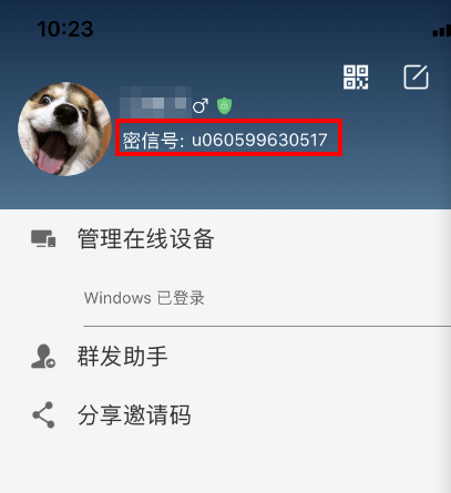 新用户注册后系统会自动生成一个无规则的密聊号,用户可自行设置一次密聊号,密聊号设置后无法更改。
