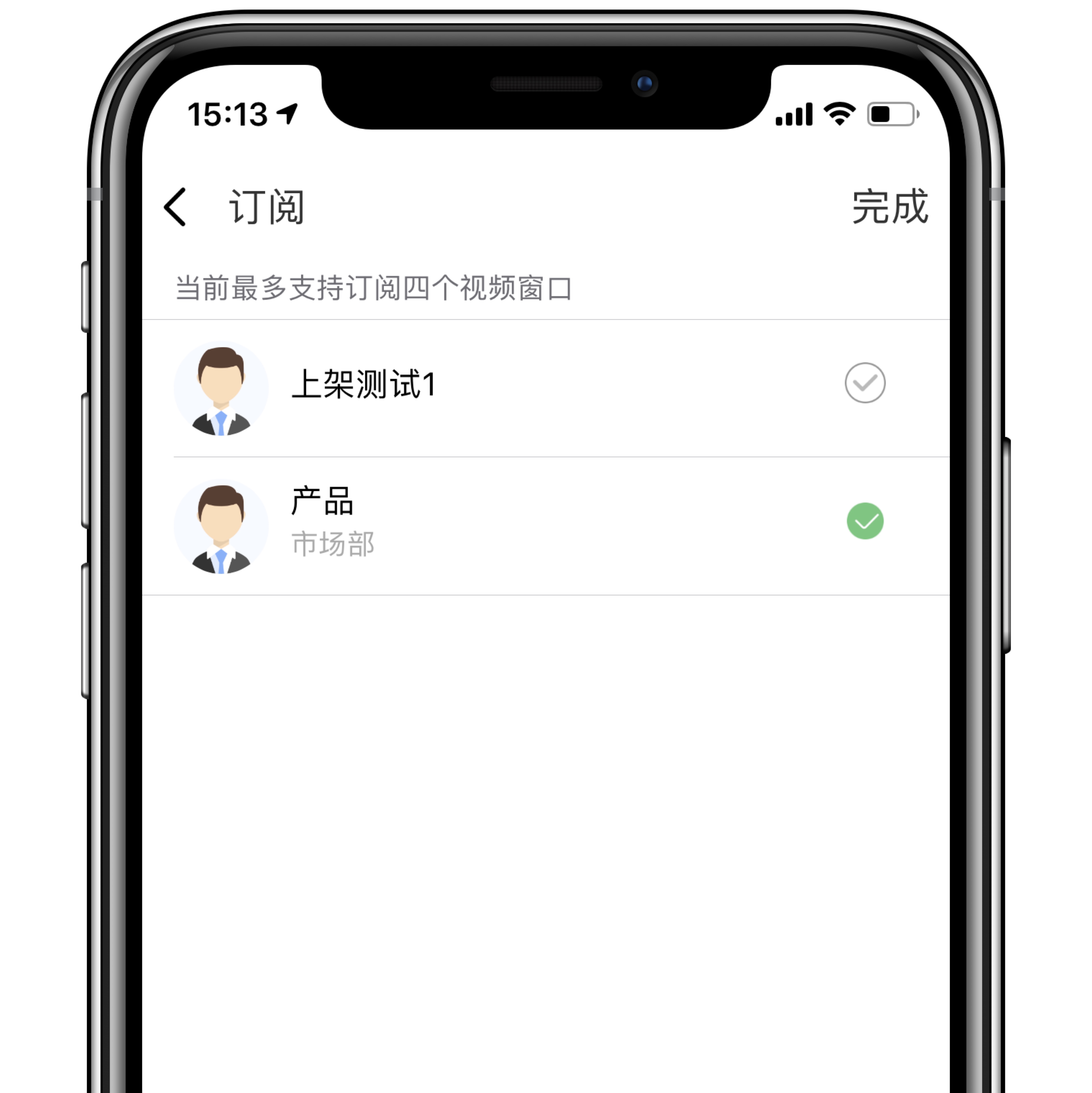 - 【成员订阅】:视频通话与会者可以通过该功能选择显示在屏幕上的人员,最多支持同时显示4人。
